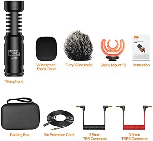 Pixel M80 Universal Camera Video Microphone, Cardioid Condenser Shotgun Mic with 3.5mm TRS/TRRS Cables for DSLR Camera, Camcorder, Smartphone, Tablet and Laptop