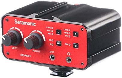 Saramonic SR-PAX1 is a two-channel audio mixer with phantom power, specially designed for mirrorless digital camera, DSLR camera and camcorder with a microphone jack. It is ideal for recording professional quality audio from two sources and mixing them into your camera.