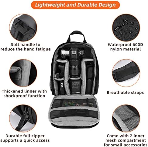 Camera Backpack for Women, Holres Waterproof Photographer Shockproof Camera Bag Case for DSLR/SLR Mirrorless Camera Lens Case Professional Camera Laptop Backpack Fits Up to 13 inch Laptop, Black