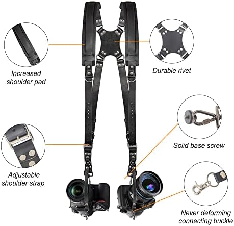 📸【Comfortable Design Style】- Harness were created in absolutely beautiful design, there are rivets at the joints, not only comfortable but made to keep you in style.Padded shoulders added for support, it perfectly distribute the weigh on both sides. Holds two cameras near your hips. Easy access to grab your camera any time you want to capture a moment.
