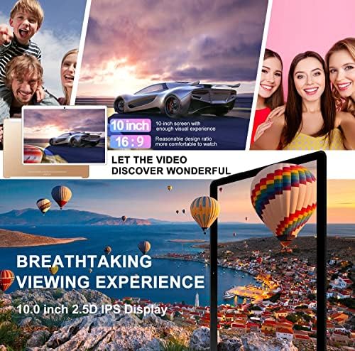 10” Tablet WiFi + Dual SIM Lte, 4GB RAM + 64GB ROM + TF/SD 128GB Expansion, Camera 5MP + 8 MP, 8000mAh Battery, Bluetooth, AGPS, Android 10, with Bluetooth Keyboard and Tablet Case, Gold
