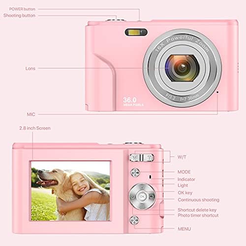 [ 36MP&1080P HD]:Digital camera have 36 megapixels, can photography 1080P ultra-clear videos, 16x digital zoom, 2.4-inch screen, can capture children’s impressive moments in high-definition for children Leave the beautiful moments and bring them more fun;