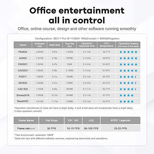 【intel i5-11320H & Windows11 Pro】–Beelink SEi-11 Mini pc equipped with 11th Generation Intel Core i5 Processors(2.5GHz Turbo 4.5GHz) 4 Cores 8 Threads, more cores and threads allow the “brain” to process more tasks simultaneously. Windows11 Pro 35W High-performance version, shockingly powerful and versatile mini pc – Great for complex task processing, large-scale game entertainment, business office, home theater, education industry, etc.