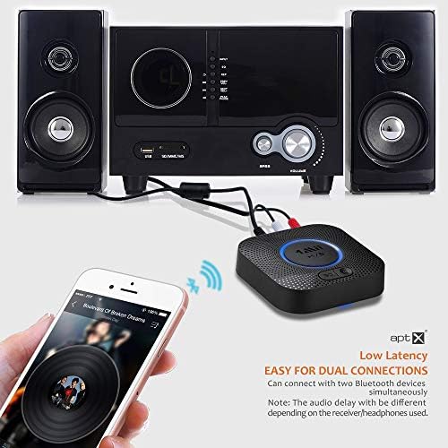 1mii Bluetooth 5.0 Receiver, Bluetooth Audio Adapter with 3D Surround, aptX Low Latency for Streaming Music from Smartphone/Tablet to RCA/3.5mm Aux AV Receiver and Home Stereo Speaker-B06