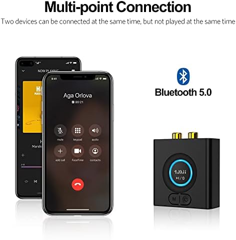 1Mii Bluetooth Receiver for HiFi Music Streaming Sound System, Bluetooth Stereo Receiver Works with Smart Phone/Tablet, RCA/3.5mm Audio Outputs to Speakers, 12H Playtime