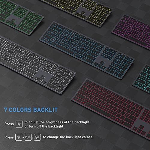 Keyboard with 7 Colors Backlit: Designed with 7 colors backlight switchable, which makes it possible to see the keys clearly even in dark. 3 levels brightness adjustable, you can turn off the backlight if you do not need it for saving the battery.