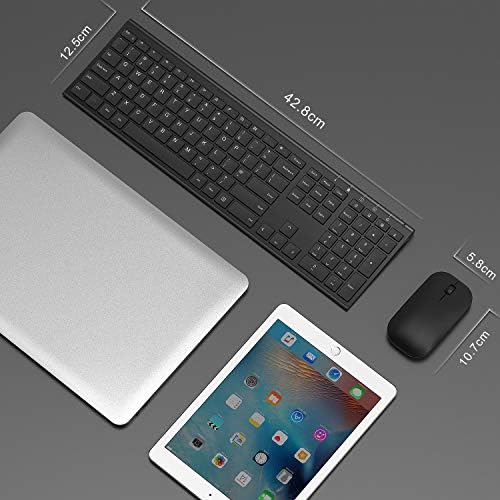 2.4GHz USB Wireless Full Size Keyboard and Mouse Combo, Silent Rechargeable Slim Keyboard and Mice Set UK Layout, 12 Multimedia Function Keys, Black
