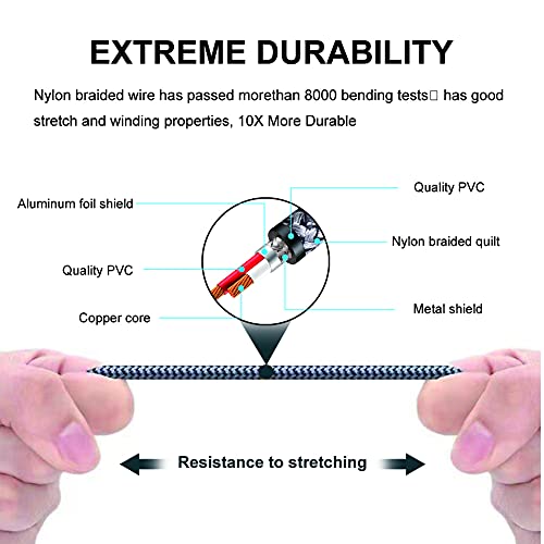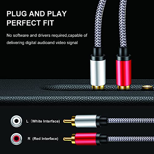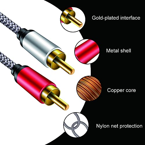 2 RCA Audio Cable 6M,J•LONG 2RCA Male to 2RCA Male Audio Stereo Subwoofer Cable Nylon-Braided Auxiliary Audio Cord for Home Theater, HDTV, Amplifiers, Hi-Fi Systems,Speakers (6M)