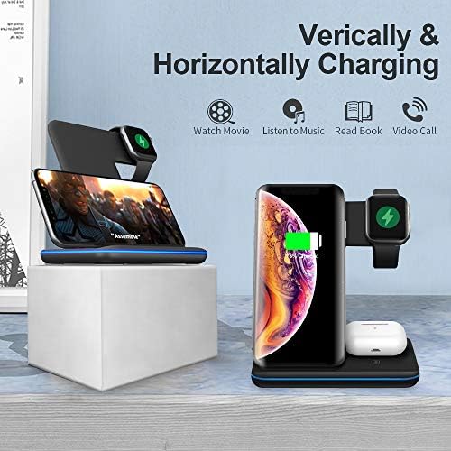 【Multi-function Charging Station】: Najov iphone and watch wireless charging station have heat dissipation holes design and non-slip silicone pad, keep your devices from scratching, rubber pads, and feet protect your device from sliding. 3 in 1 wireless charger supports vertical or horizontal wireless charging with a tilt angle design for better to enjoy videos while charging, or go vertical for video conferencing or to use facial recognition technology.