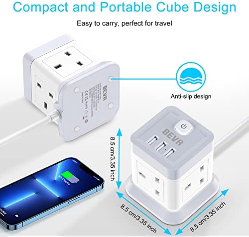 Be the first to review “3M Extension Lead Cube With USB, BEVA 4 Gang Extension Socket With 3 USB Ports, Power Strip With Switch Multi Plug Extension with 3 Metre Long Cable For Home Office Travel”
