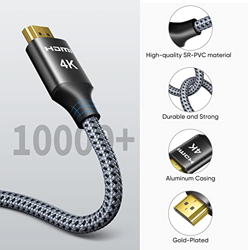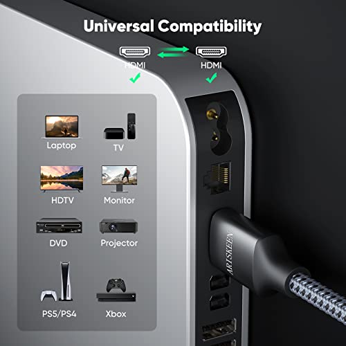 Universal Compatibility – ARISKEEN HDMI Cable constructed using high-quality material for best contact connection between HDMI equipment, CD/DVD/Blu-ray players, Fire TV, PS5/PS4/PS3, Xbox One/360, HDMI Switch, computers, or other HDMI-enabled devices to your 4K/HD TV, monitors, displayers or projectors