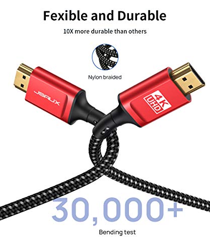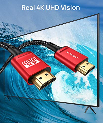 4K HDMI Cable 3M, JSAUX Ultra High Speed 18Gbps HDMI 2.0 Cable Lead Support 4K@60Hz Supports Video UHD 2160P, HD 1080P, Ethernet, 3D Compatible with Fire TV, Apple TV, PlayStation PS4 PS3 PC – Red