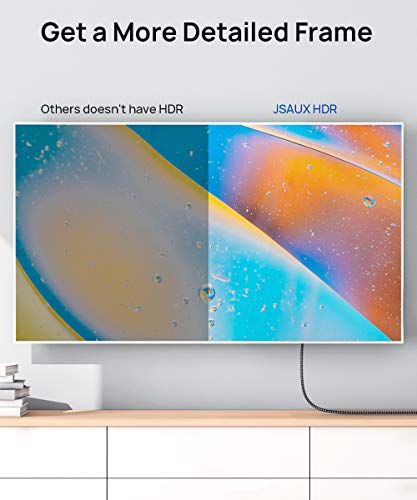 【High-speed Data Capacity】: JSAUX High-Speed HDMI Cable supports HDMI 2.0 including Mirror & Extend mode, UltraHD 4K 2160p (up to 60 Hz 4:4:4), HD 2K 1080p (up to 240 Hz), QHD 1440p (up to 144 Hz), HDCP 2.2,3D,48-Bit Deep Color, Audio Return(ARC), Dolby TrueHD 7.1 audio and Hot plugging. And it does not require an adapter or installation driver, plug and play, it’s an ideal companion for home theaters, game centers, conference rooms, and medical imagin.
