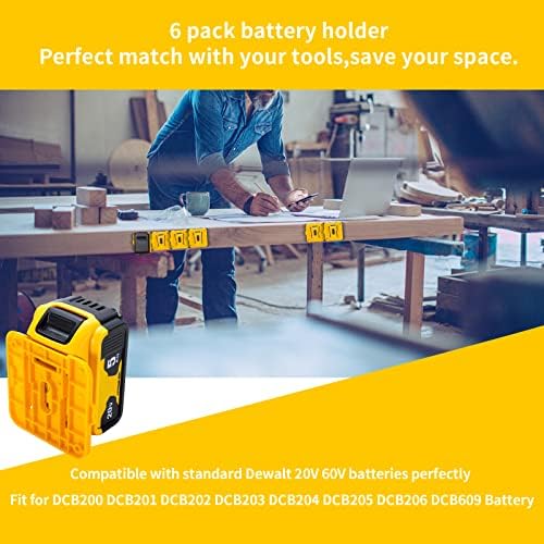 6 Pack Battery Holder for Dewalt 20V/60V MOUNTS/Hanger/Dock Holder Fit for DCB200 DCB201 DCB202 DCB203 DCB204 DCB205 DCB206 DCB609 Battery