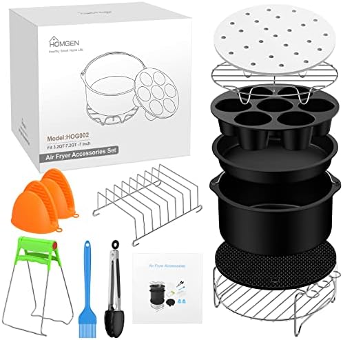 *Safe Material*—-: The Homgen 17 Pcs Air Fryer Accessories Stainless Steel Rack is Durable and Food Grade Silicone is Safe for Usage.Our air fryer accessories are using FDA certificated material, which are 100% Safe and Healthier. Enjoy your Healthy Cooking Time
