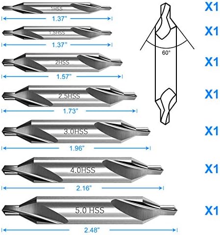 7 Pieces Center Drill Bits Set, M2 High Speed Steel 60-Degree Angle Center Drill Bits Kit Countersink Tools for Lathe Metalworking Size 1.0 1.5 2.0 2.5 3.0 4.0 5.0