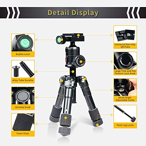AFAITH Compact Mini Camera Tripod, Lightweight Portable Travel Tripod with 360 Degree Ball Head and 1/4″ Quick Release Plate for DSLR Cameras Camcorders Canon Nikon