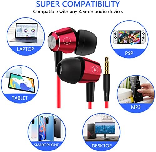 🎧【EXCELLENT & PURE SOUND PERFORMANCE】In Ear Wired Headphones with Powerful Bass built-in high-performance speakers for extended frequency range, high performance, lower distortion, and noise isolating ear tips eliminate ambient noise. Powerful bass-driven stereo makes you get pure sound and a comfortable sound range experience. Provide perfect listening pleasure for video, music, phone calls, etc.
