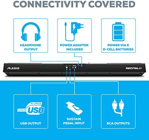 Alesis Recital 61 | 61-Key Digital Piano / Electronic Keyboard with Full Size Semi Weighted Keys, Power Supply, Built-In Speakers and 10 Premium Voices