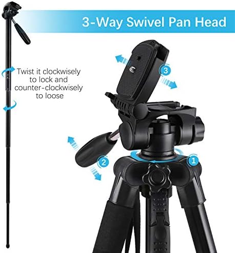 Tripod & Monopod 2-in-1: This photography tripod can be converted into a monopod in seconds, just loosen the knob and pull out the center column, then you can use the center column as a monopod(Max.148cm/58.27inch).