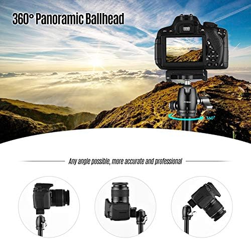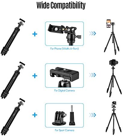 Andoer 61in Wireless Portable Camera Tripod, Lightweight Aluminum Tripod with 360 ° Panoramic Ball Head, 1/4in Quick Release Plate and Phone Clip, Suitable for Smartphone, DSLR Canon Nikon Sony