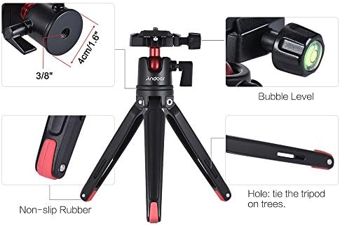 Andoer Mini Tripod Tabletop Tripod with 360° Ball Head and 1/4 Screw compatible with GoPro, DSLR Cameras, Projectors, Webcams, and Smartphone Mount Adapter