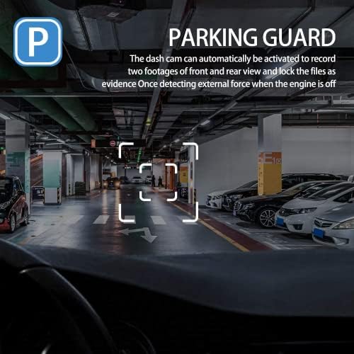 Parking Guard: The dash cam will turn on and automatically start recording about 30 seconds video once detecting external force when the engine is off and then turn off automatically to prevent running out of power (Recorded video won’t be overwritten). The dash cam front and rear camera can automatically be activated to record two footages of front and rear view and lock the files as evidence