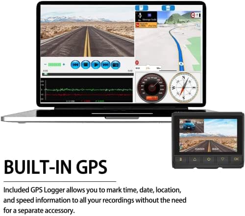 WI-FI Connect &Built-in GPS: You can connect to Wifi and use the mobile APP to operate the car dash cam. Full-featured front and rear dash cam mobile app enables live viewing, real-time photo and video sharing on social media. The GPS module allows you to easily track location, direction, speed (accurate to km/h or mp/h), date, and time on the computer