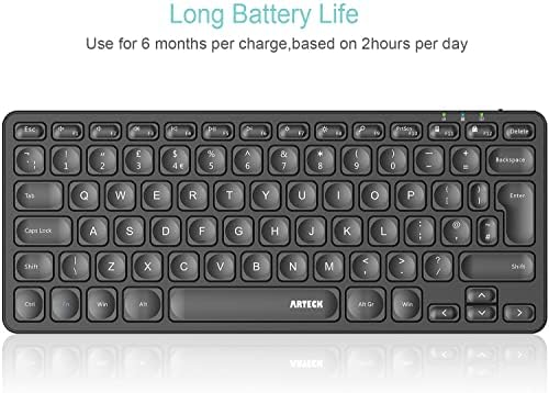 Arteck 2.4G Wireless Keyboard Ultra Slim and Compact Wireless Keyboard with Media Hotkeys for Computer/Desktop/PC/Laptop/Surface/Smart TV and Windows 10/8/ 7 Built-in Rechargeable Battery