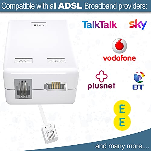 ✅ WIDE COMPATIBILITY: This professional ADSL cable splitter is compatible with BT Talktalk Plusnet EE Vodafone broadband providers. It can be used for modem routers telephones fax machines alarm systems or ADSL lines.