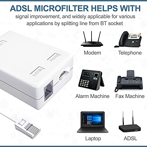 ASNQ ADSL Filter – Microfilter for Phone/Broadband BT Plug to RJ11 Connector – Broadband Filter for BT Sky Talktalk – BT Microfilter for Modem Telephone Fax – Internet and Telephone Splitter