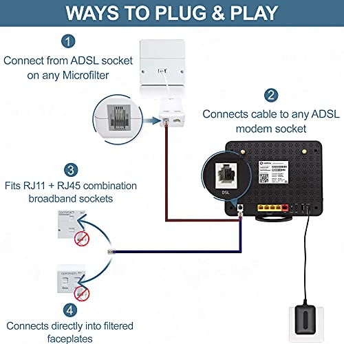 ✅ FAST DATA TRANSMISSION: The ADSL microfilter establishes a secure and reliable connection that ensures a fast data transfer for ADSL broadband cables while eliminating interferences and delivering the optimal signal speed.