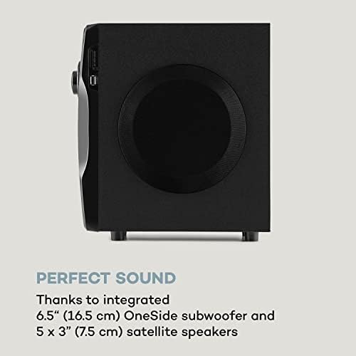 POWERFUL PERFORMANCE: The home cinema sound system 5.1 from auna picks up the incoming surround signal and distributes it to the 5 x 3″ (7.5 cm) compact satellites and the powerful 6.5″ (16.5 cm) OneSide Bass reflex subwoofer.