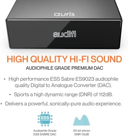 Auris Audifi Multiroom Music Receiver, WiFi & Bluetooth 5.0 Hi-Res Audio Streamer with Audiophile DAC, AirPlay, DLNA, Spotify Connect, Wireless Audio Adapter for Home Stereo, AV Receiver or Amplifier