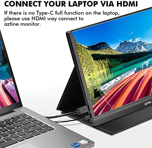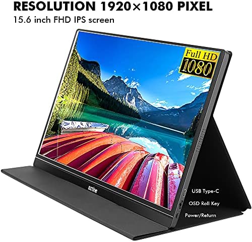 Aztine 15.6″ Portable Monitor 1920×1080 Full HD IPS Screen Display with HDMI & USB Type-C for Laptop, PC, MacBook, Xbox, PS3/4, Android Phone (Black)