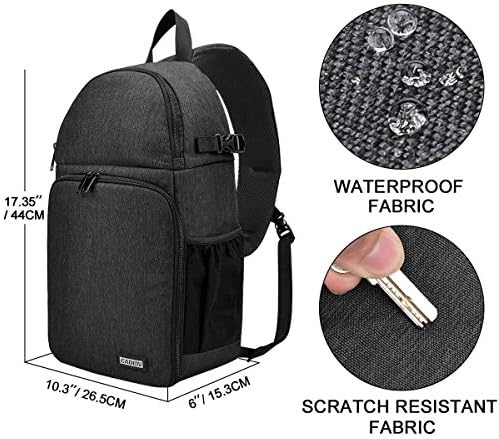 2. MATERIAL — This sling backpack is made of durable waterproof polyester fabric, protecting your camera and accessories from rain or spraying water.