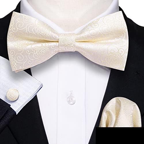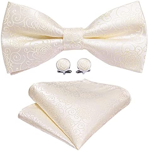 Barry.Wang Mens Pre-tied Bow Tie Set Paisley Silk Tie Pocket Square Cufflinks for Wedding Party Formal