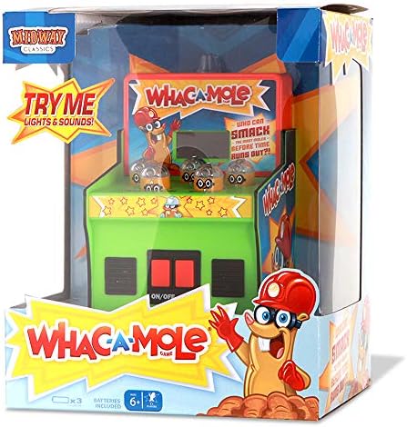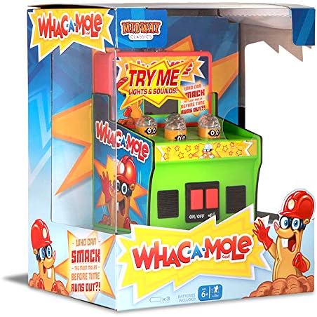 WHAC-A-MOLE MINI ARCADE MACHINE: Conveniently tabletop sized, the retro game has two play modes, so you can chase a high score or challenge family and friends! Who can smack the most moles before time runs out?