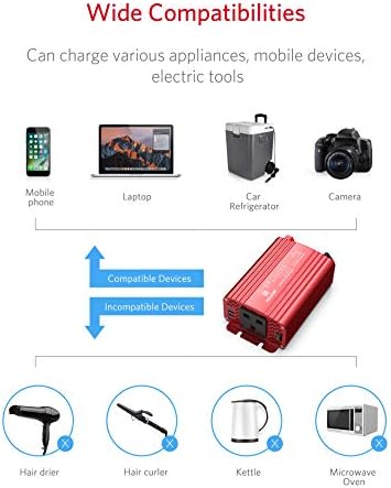 【Powerful charging AC outlets for charging larger devices such as laptops and tablets or any other household appliances under 500 Watts, 2 smart USB ports (0-2.4A) for charging USB-powered devices. A good choice as requisite car accessories
