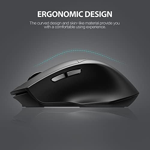 Bluetooth Mouse, Inphic Multi-device Rechargable Bluetooth Wireless Mouse (Tri-mode: BT5.0/4.0 +2.4G USB), 1600DPI Portable Ergonomic Silent Computer Mouse for Laptop PC Mac OS Windows, Black