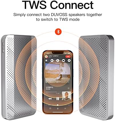 💛【High Quality Clear Sound & TWS Effortless Pairing & Subwoofer】Delivers powerful sound and robust bass through an advanced 5W driver and passive subwoofer.If you have 2 DUVOSS bluetooth speakers, simply connect one of these, your 2 speakers will automatically split into right and left channels,3D stereo surround. When you listen to music, watch movies, or play games, immediately brings you extraordinary clarity and detail.