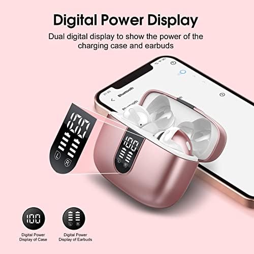 Bluetoth 5.2 Wireless Headphones, Wekily X08 Wireless Earbuds 40H Playtime with LED Power Display, Deep Bass, IPX7 Waterproof Headphones with Touch Control for Sport/Work Earphones (Pink)