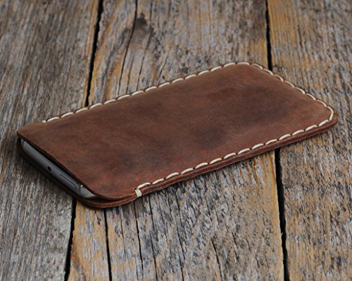 Brown Leather Case for iPhone 14 Pro, Hand Stitched Pouch