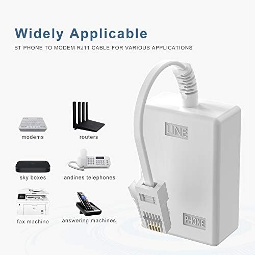 BT Plug to ADSL RJ11 Broadband internet Microfilter Splitter, Ancable BT Male to BT & RJ11 Female for Landline Modem Router Wifi Plug Telephone White Socket Phone Splitter Cable Sky, BT