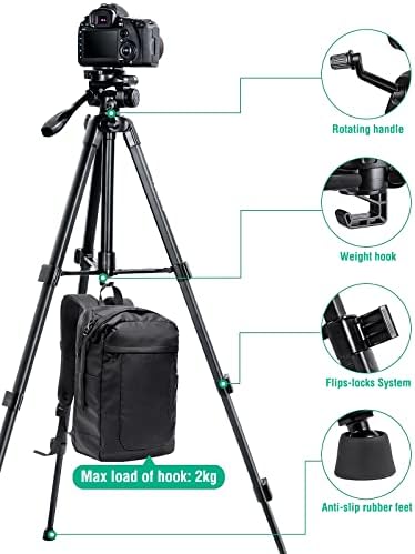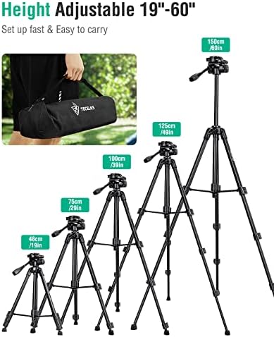 Camera Tripod, TECELKS DSLR Tripod for Canon Nikon, with Bluetooth Remote Shutter, 1/4” Quick Release Plate, Phone Holder and Carry Bag for Travel/Vlog/Video/Photography/Streaming