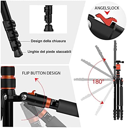 【 aluminum tripod】: excellent aluminum alloy tripod, refined with precise CNC technology, has excellent high strength and rigidity, so that it has a strong and stable structure; the bottom of the center column is equipped with a hook design that can hang additional heavy objects. Increase stability; 23mm large pipe diameter system can provide up to 17.6lbs / 8kg load capacity; non-slip rubber feet design to stabilize the tripod on the ground