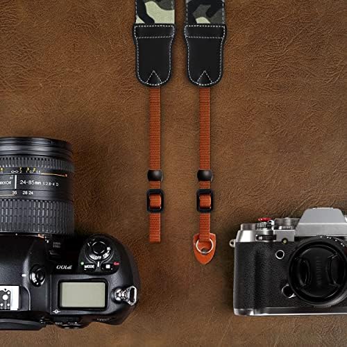 📷STRONG COMPATIBILITY:Our camera straps are designed with two attachment methods to be compatible with all cameras :The first method is suitable for SLR cameras, and is fixed with 0.06 inches (0.15cm) high density thickened nylon rope + High Density POM Plastic Buckle; the second method is suitable for mirrorless digital cameras and telescopes: use a circular metal ring to hook the camera, Plus a cowhide protective pad, which can protect the camera from scratches due to use.