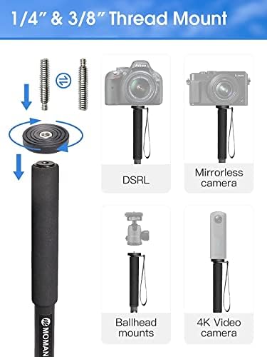 【Lightweight & Sturdy】Made of 8 layers of carbon fiber, MOMAN C65 monopod weighs only 0.7lbs/0.33kg but possesses 28mm large diameter and 22lbs/10kg large payload, keeping your DSLR cameras steady and effectively shock-proof.