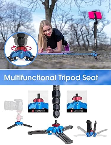 【Multifunctional Tripod Seat】The included strong and steady tripod seat built with 3/8” screw can be connected with monopod well or directly installed with a ballhead mount. With angle adjusting knob, it allows 360-degree rotation for panoramic shooting.