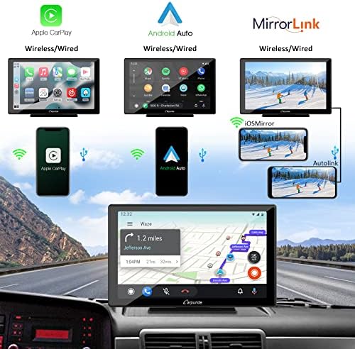 ????【Wirelessly 9 inches IPS Smart Display】CARPURIDE 9″ portable car stereo compatible with Apple Carplay & Android Auto. After link wirelessly, puting all your phone’s best features in a clean, safe, and easy-to-use hd touchscreen, wirelessly handle gps navigation, messaging, phone calls, bluetooth music, SiriusXM. Never worry about heating and battery damage caused by using your mobile phone for navigation for a long time.